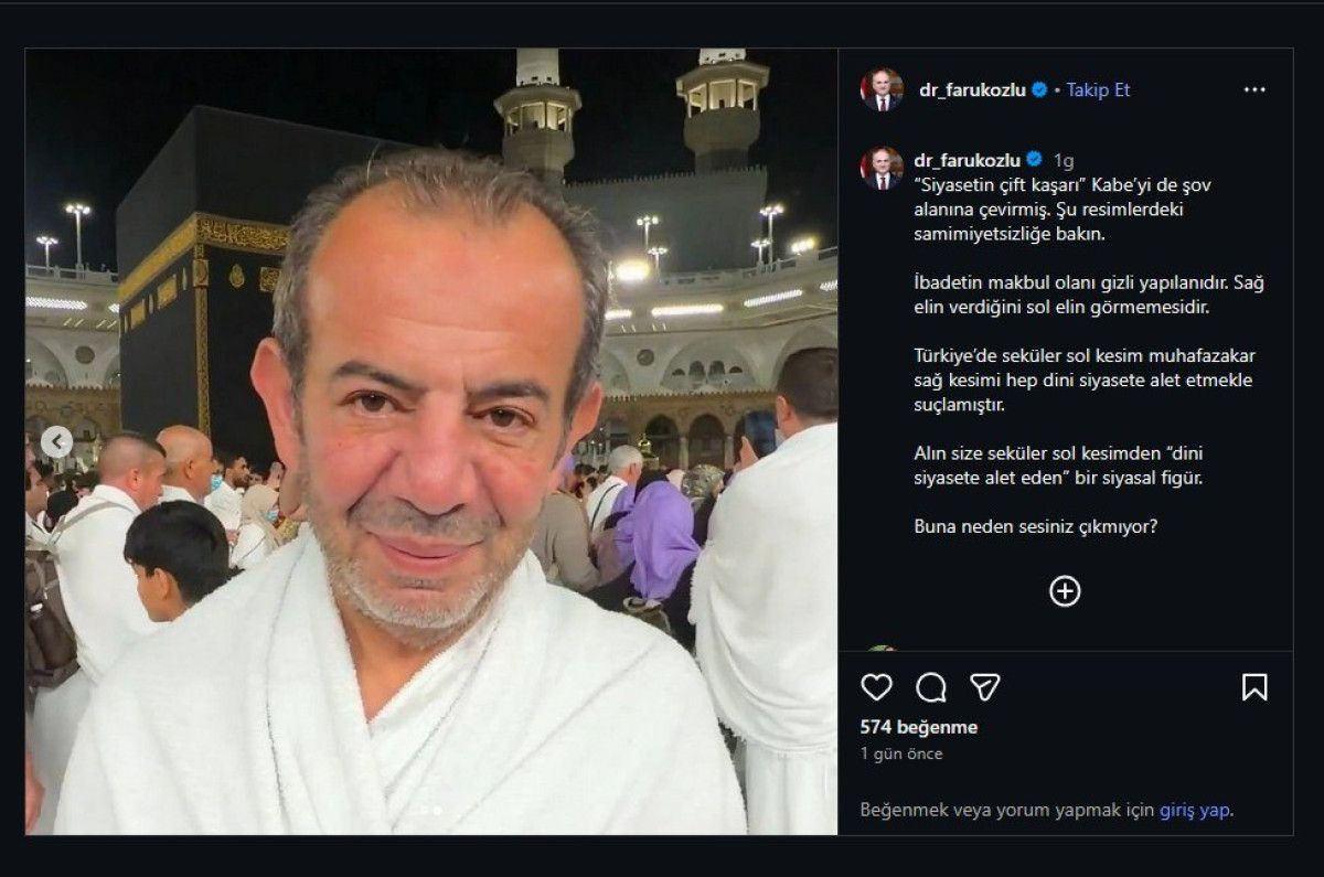Umre’den yaptığı paylaşımlarla Tanju Özcan’ın şov yaptığını dile getiren Düzce Belediye Başkanı Dr. Faruk Özlü, sosyal medya hesabından Özcan’ı eleştirdi.