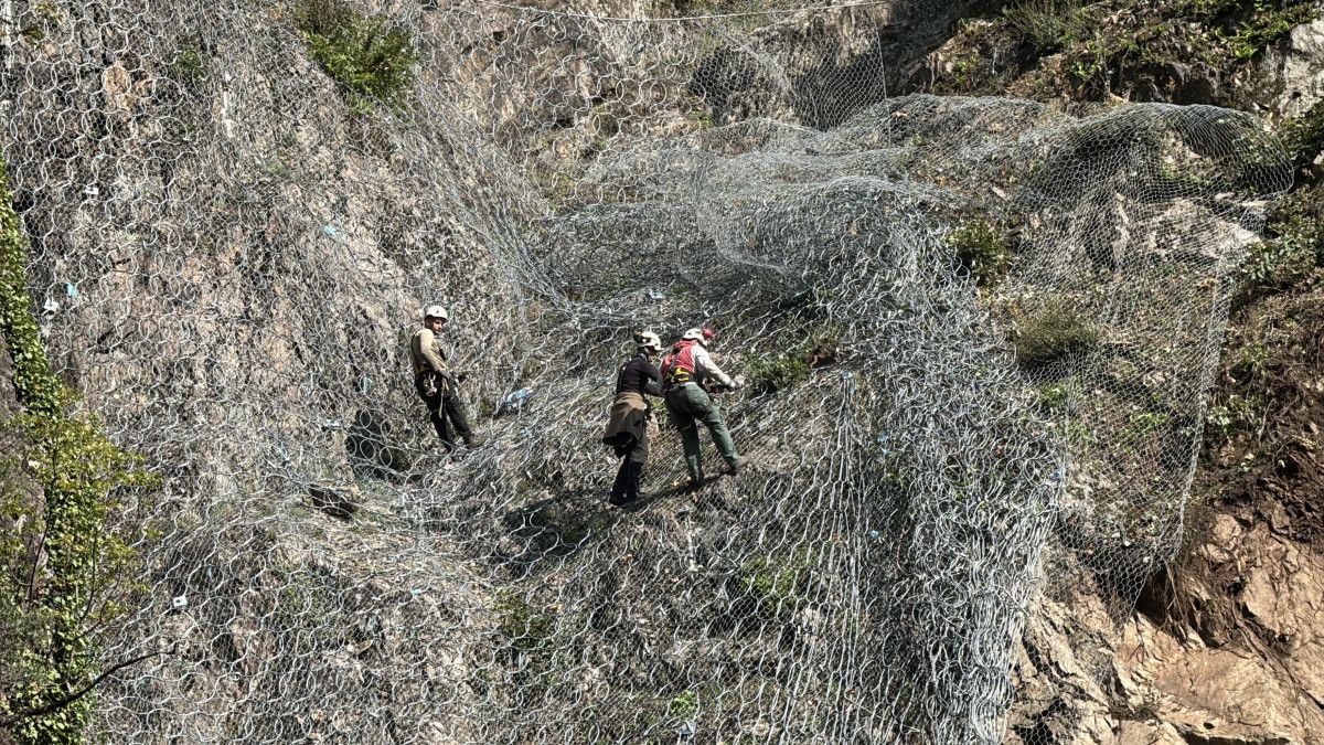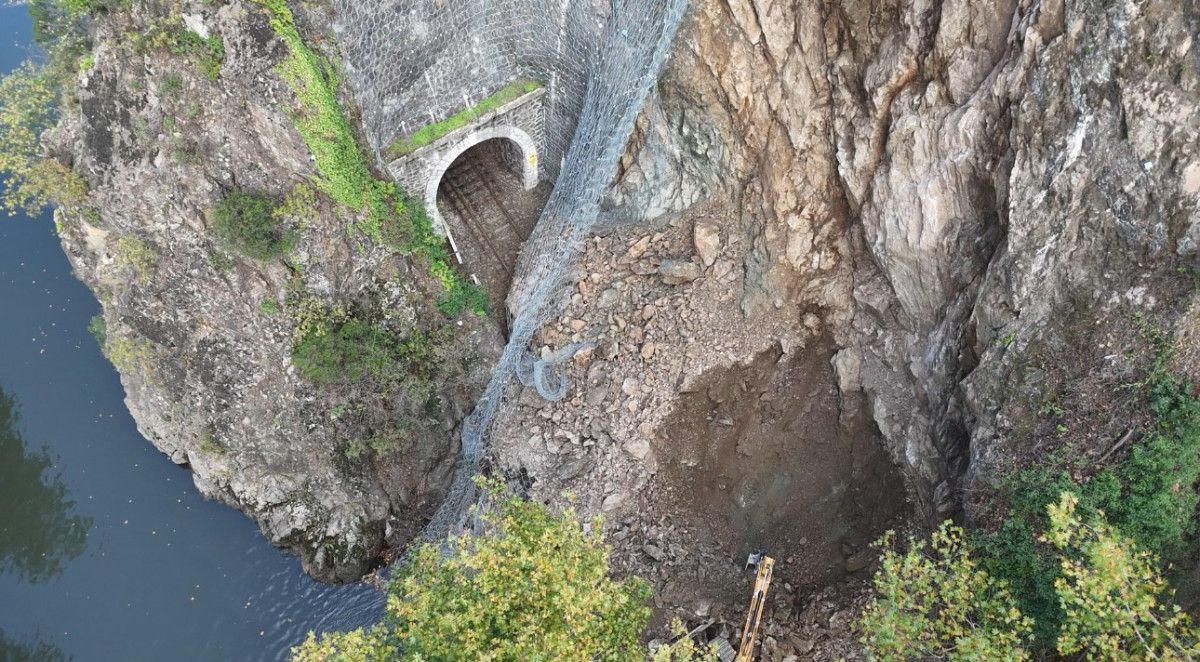 Toprak ve kaya parçalarının rayları kapatması sonucu tren seferleri geçici olarak durduruldu. Bölgeye sevk edilen ekipler, hattın yeniden ulaşıma açılması için yoğun çaba harcıyor. Heyelanın etkilediği alan, drone kamerasıyla havadan görüntülendi.