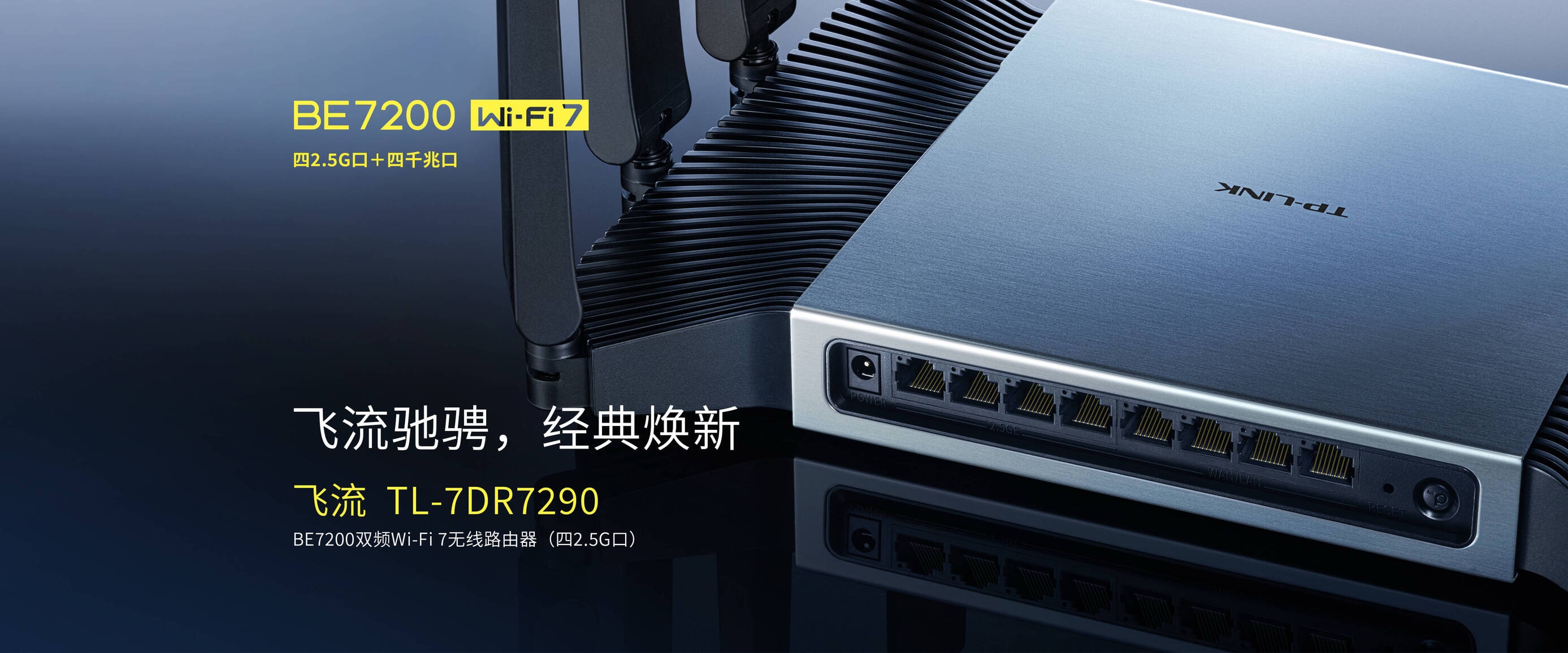 TL-7DR7270, ev ve küçük ofis ortamı için uygun WiFi 7 router modeli. İki adet 2.5G Ethernet portu, dört adet Gigabit LAN portu ile donatılmış. Router, 4K QAM, MRU (Çoklu Kaynak Birimi), MLO (Çoklu Bağlantı İşlemi) ve Preamble Puncture (parazitli kanalları devre dışı bırakıp bağlantının akışını bozmadan diğer kanalları tam kapasite kullanma) gibi gelişmiş Wi-Fi 7 teknolojilerini destekliyor.